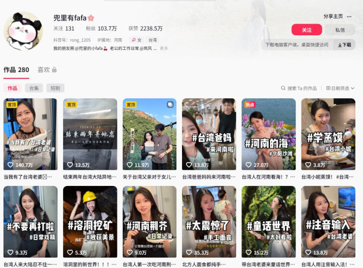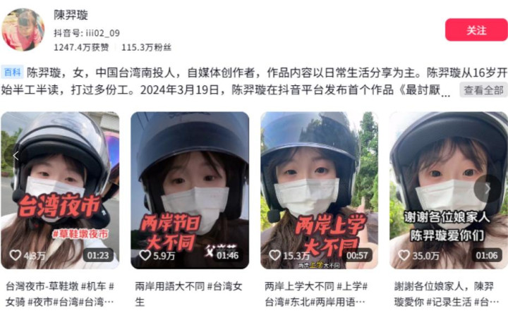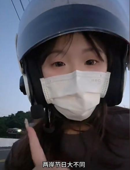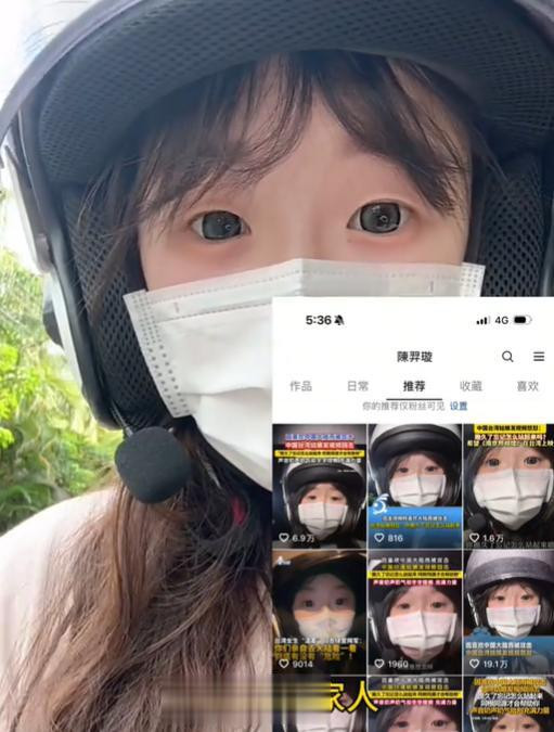 她为了吸引粉丝,戴着头盔和口罩出镜,还专门做了好多期台湾和内地生活的对比。
