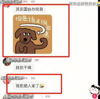 但是又看群里聊天,她拒绝了国台办的邀请,估计跟自己没有拿到钱有关。