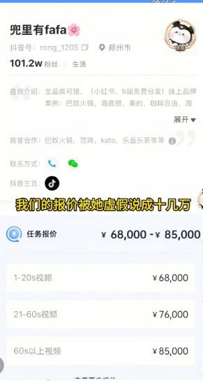 为了证明她在撒谎,花花直接将自己的报价公开,大概在6万到8万这个区间,没有十万。
