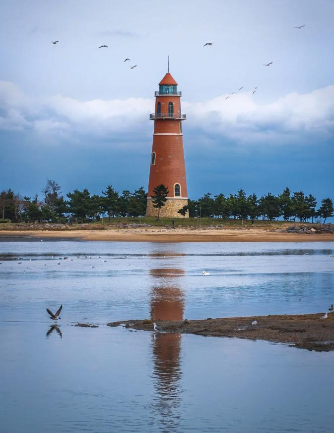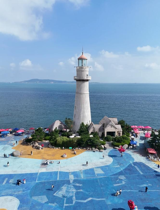 威海公园有个巨大相框,正对海天线,站在中间拍照,像画中人。再往北,悦海公园的灯塔收尾,晚霞刷满海面,像谁打翻了调色盘。