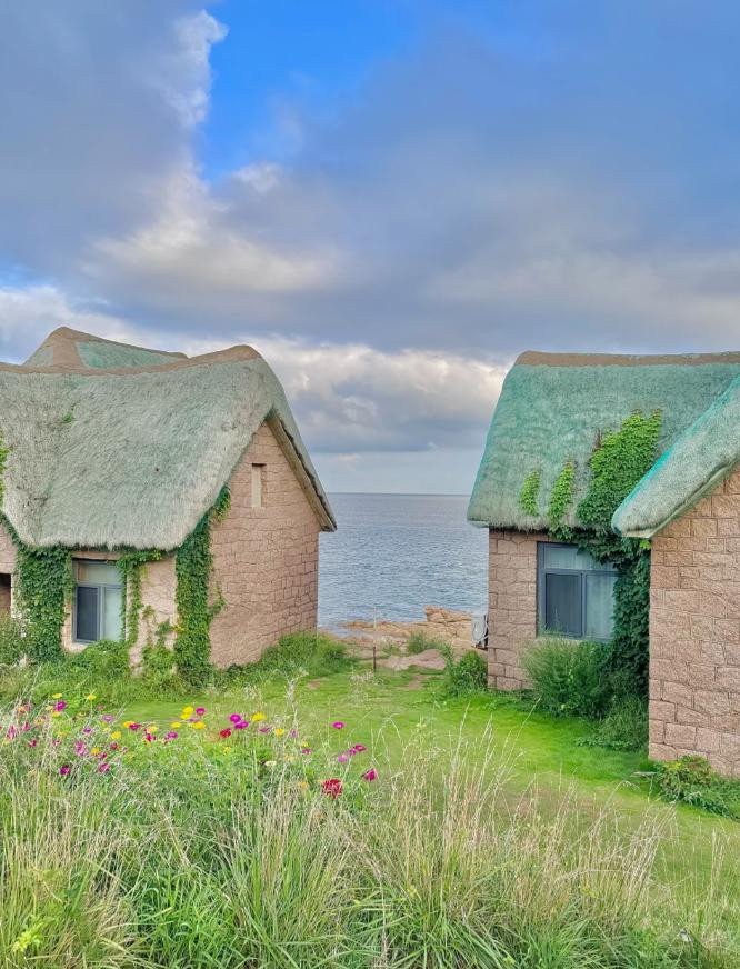 不想太折腾,也可以去金石湾的海草房,坐在旧民居的庭院里晒太阳。或者布鲁威斯号海滩,安静到能听见浪打岩石的“咕咚”声。