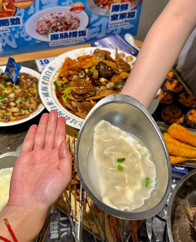 桌上大盆端上来,虾蟹肉蟹蒸气腾腾地冒。鲅鱼水饺大得像拳头,咬一口汤汁喷出来,连旁边桌的人都忍不住偷看。