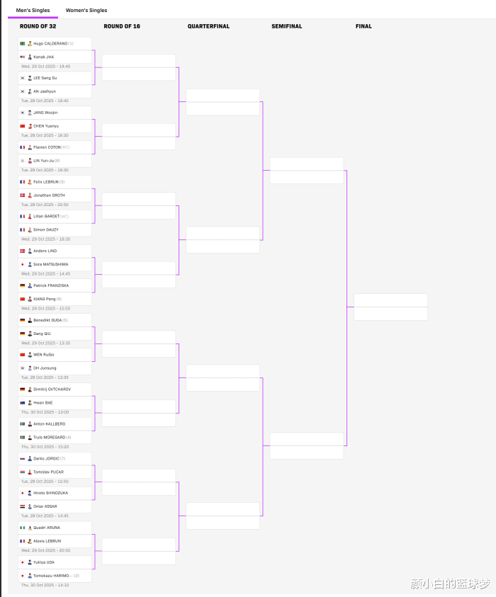 男单这边国乒派出了:陈垣宇、向鹏、温瑞博三人,这三人都不是国乒主力,不过这一站男单的世界第三雨果来了,雨果是本站头号种子,张本智和是二号种子。