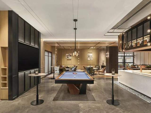 2023年,福朋喜来登推出了全新的“一站式”餐饮概念——玩啤食社(The Mesh)。作为品牌经过深思熟虑所打造的空间,不同于传统酒店功能区划,而是通过“四面吧”的设计,不同的吧台功能与对应空间形成无缝对接,将大堂吧、餐厅、社交区、移动办公、精酿体验融为一体,形成“吃、喝、玩、工作、社交”一站式场景。