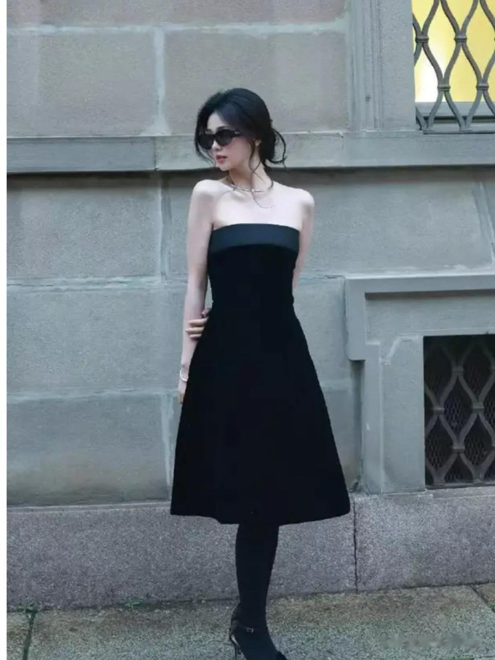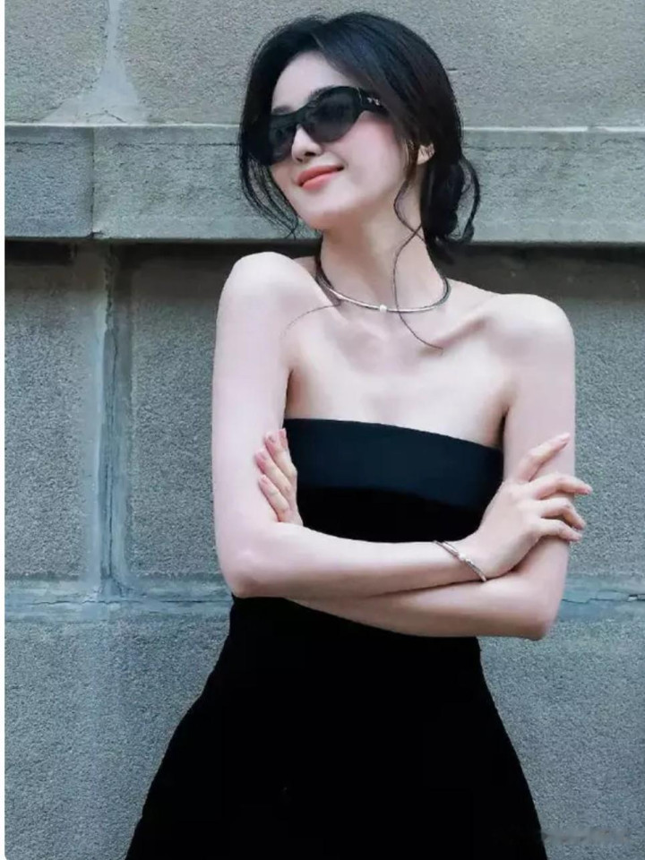 这份“权威感”,首先藏在造型的精准表达里。她身着剪裁利落的黑色廓形西装,内搭同色系抹胸或酒红色真丝吊带裙,金属链条腰带恰好勾勒腰线,漆皮手套与尖头高跟鞋形成视觉延伸。西装的硬朗线条碰撞丝绒的柔滑质感,刚柔并济间,“女财阀”般的矜贵感油然而生。配饰选择暗藏巧思:银色项圈点缀脖颈,西装袖口的金属铆钉低调闪耀,连随手拎的鳄鱼皮手提包都是高奢未发布款,每处细节都在诠释“以简驱繁”的时尚智慧。