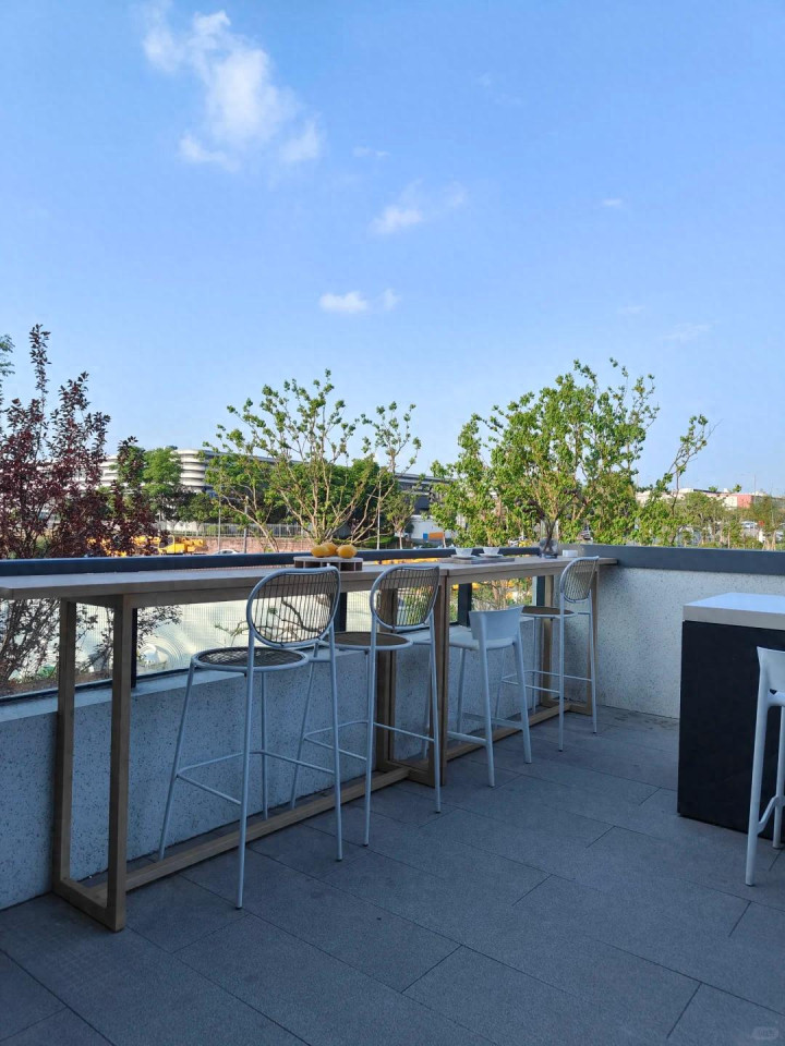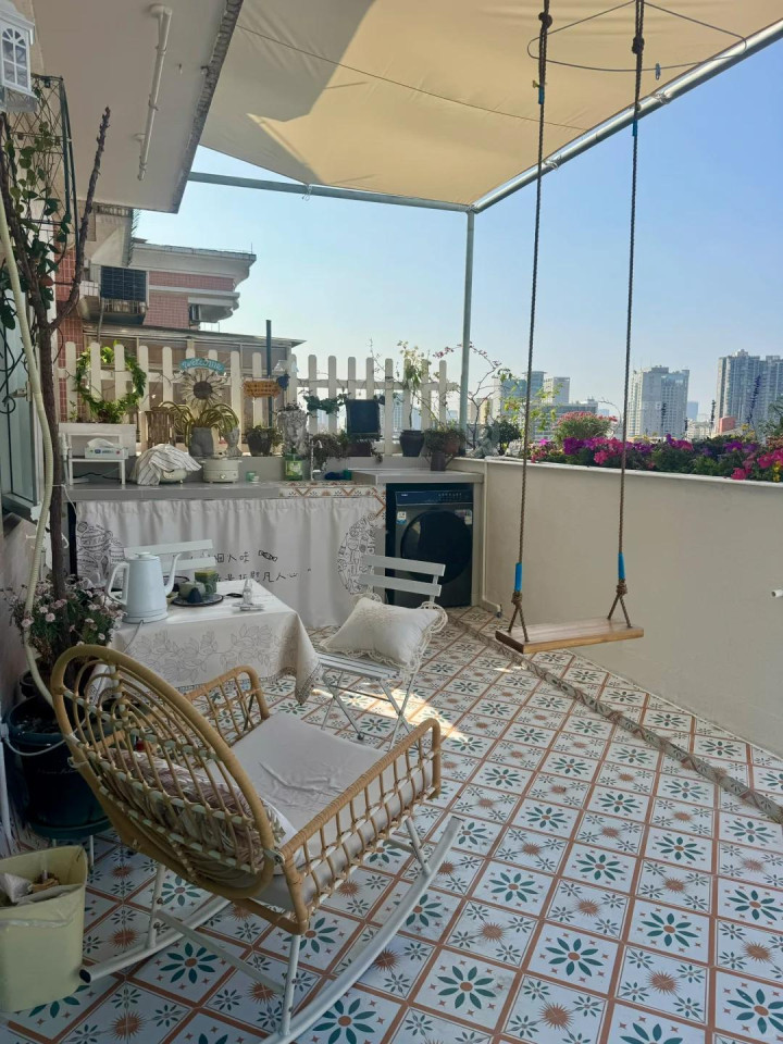 站在露台上,手扶栏杆,能感受到微风拂面。楼下是车水马龙,而这一方小天地却独享清静。