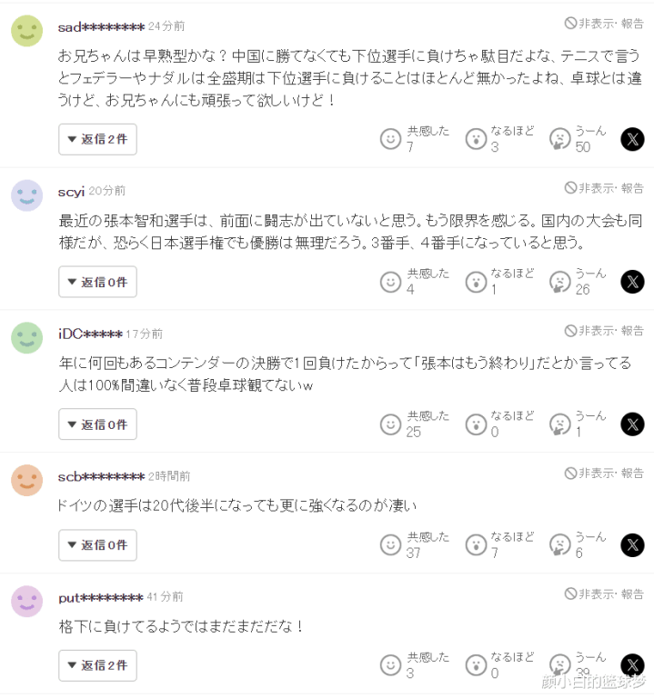 日本球迷还纷纷炮轰张本智和: