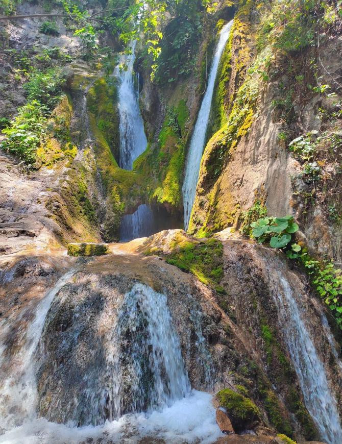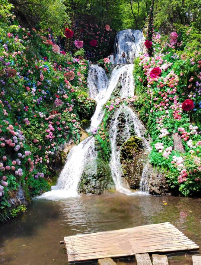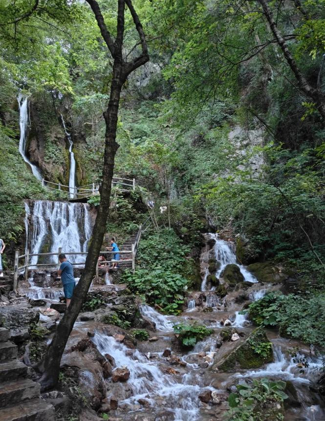最后留点时间给水帘仙宫,穿拖鞋踩水台阶,水流沿着脚背流过,清凉是真实的,笑声也是真的。